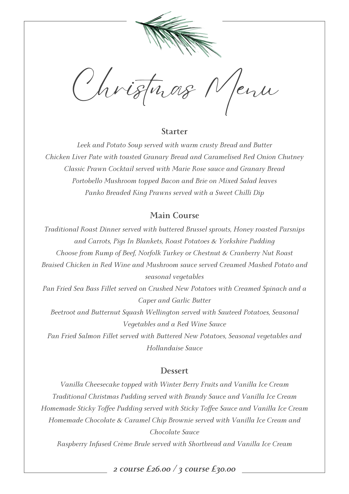 Christmas Festive Menu 2025