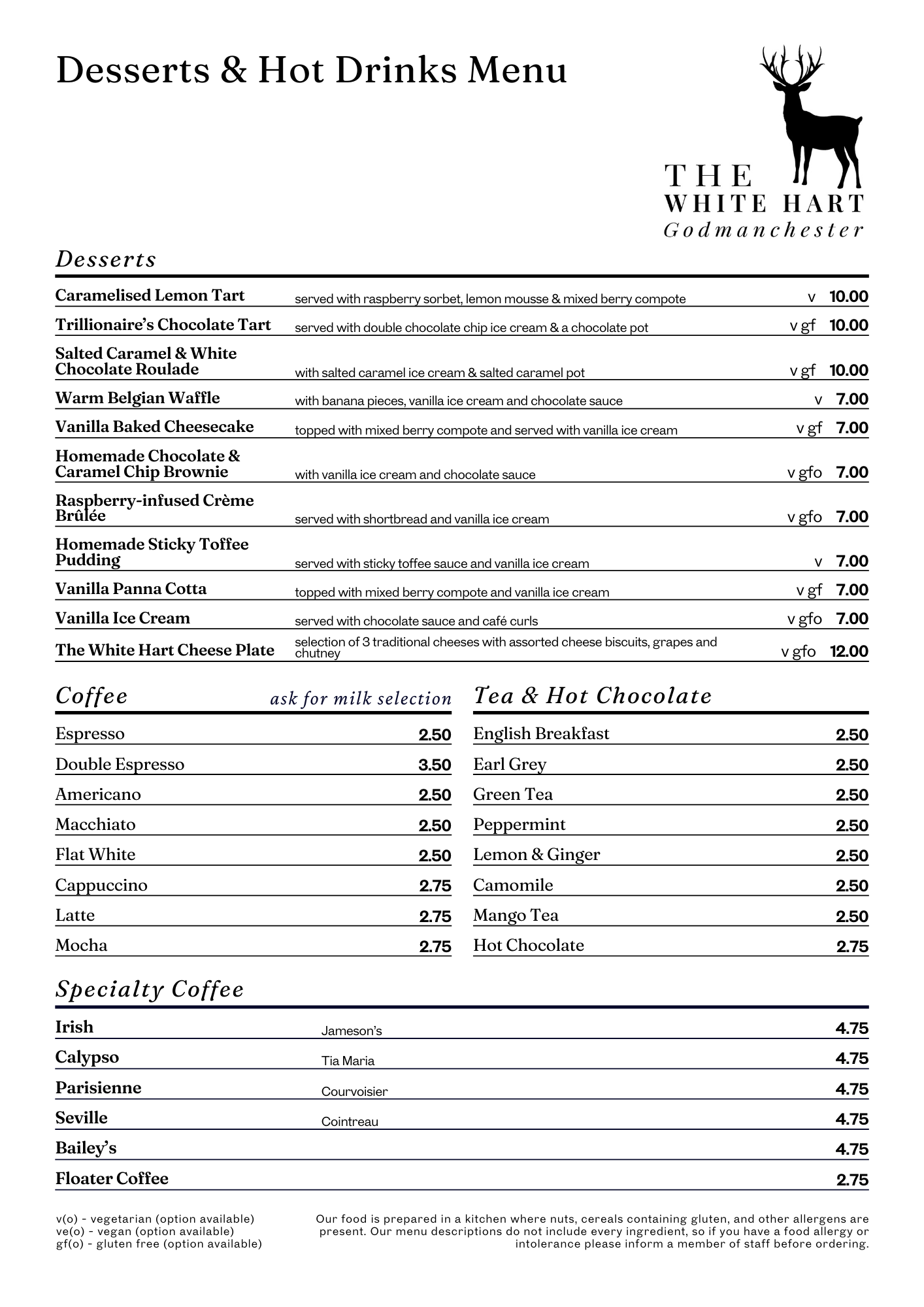 Desserts & Hot Drinks Menu